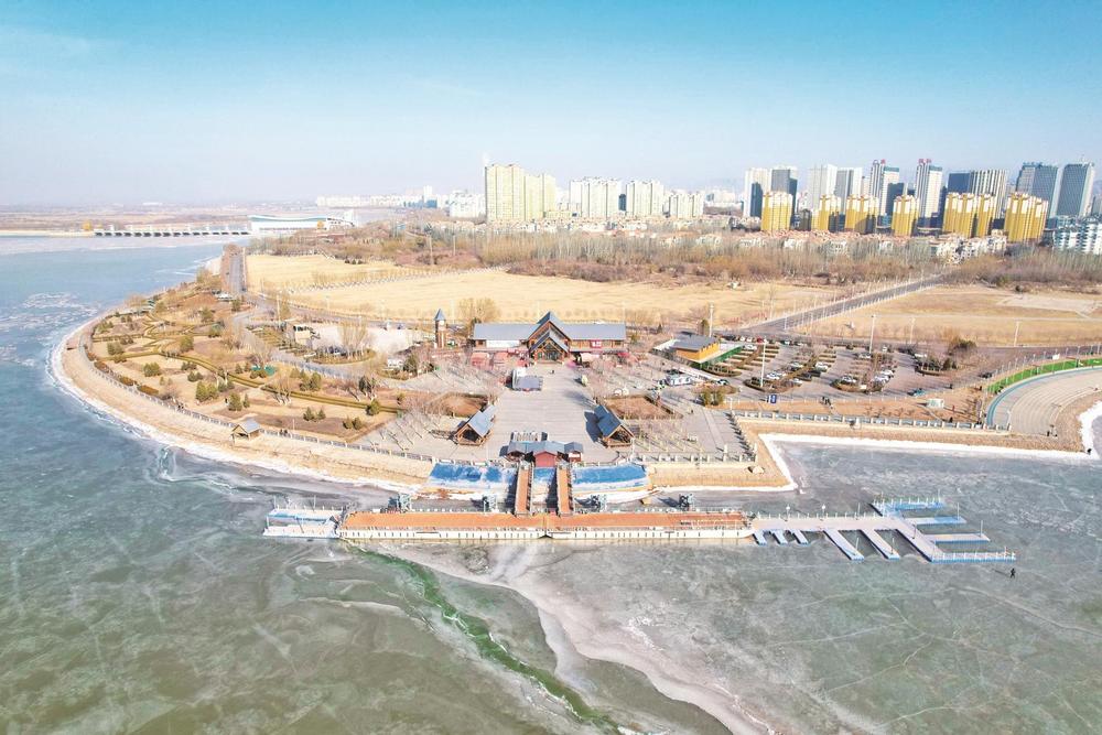 1月22日,冬日暖陽下,烏海湖休閑度假旅游區(qū)一號碼頭景色迷人,多種色彩交織,在五彩斑斕間勾勒出一幅絢麗的冬日畫卷。 (高瑞鵬 攝)
